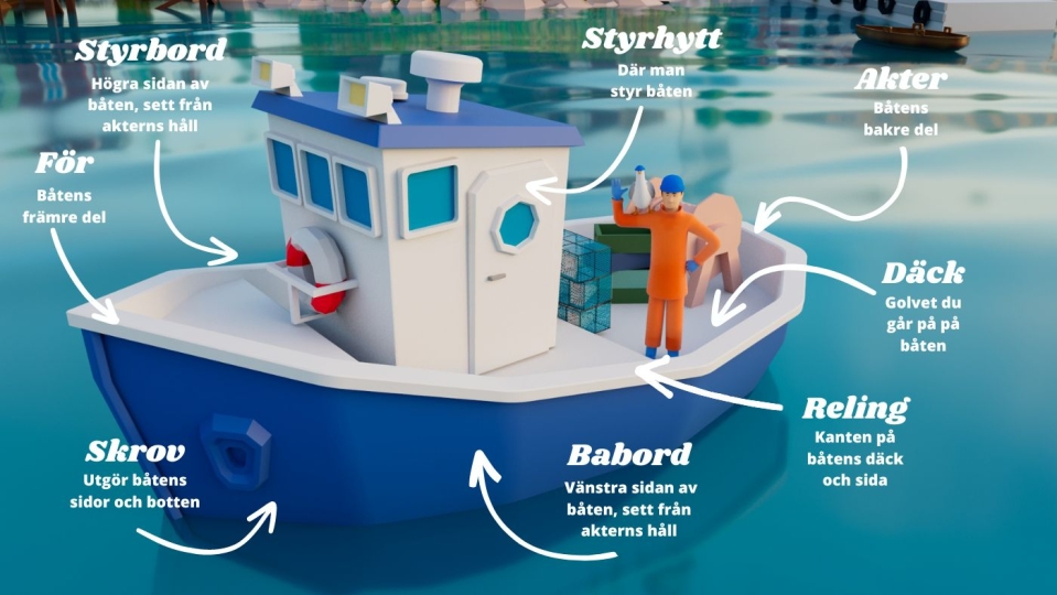 På båtar (inte bara inom fisket) verkar det finnas ett helt eget språk! Det är massor med ord och termer som används och ibland kan det vara svårt att veta vad de betyder. Här försöker vi visa och förklara några av de vanligaste orden för båtens olika delar.