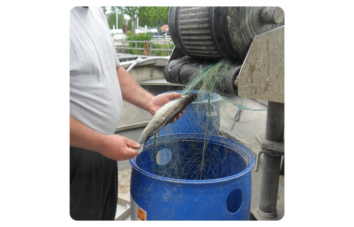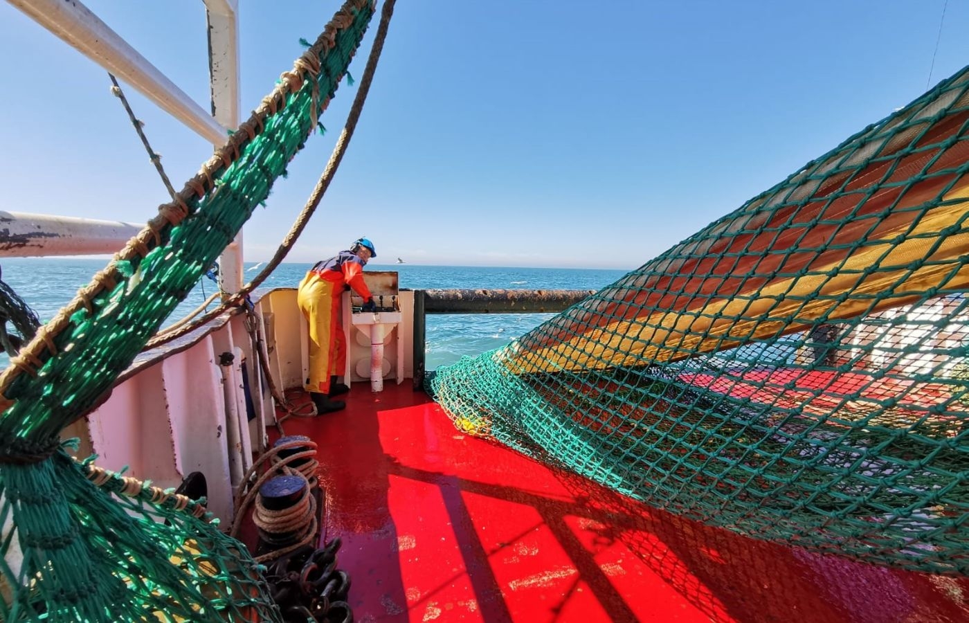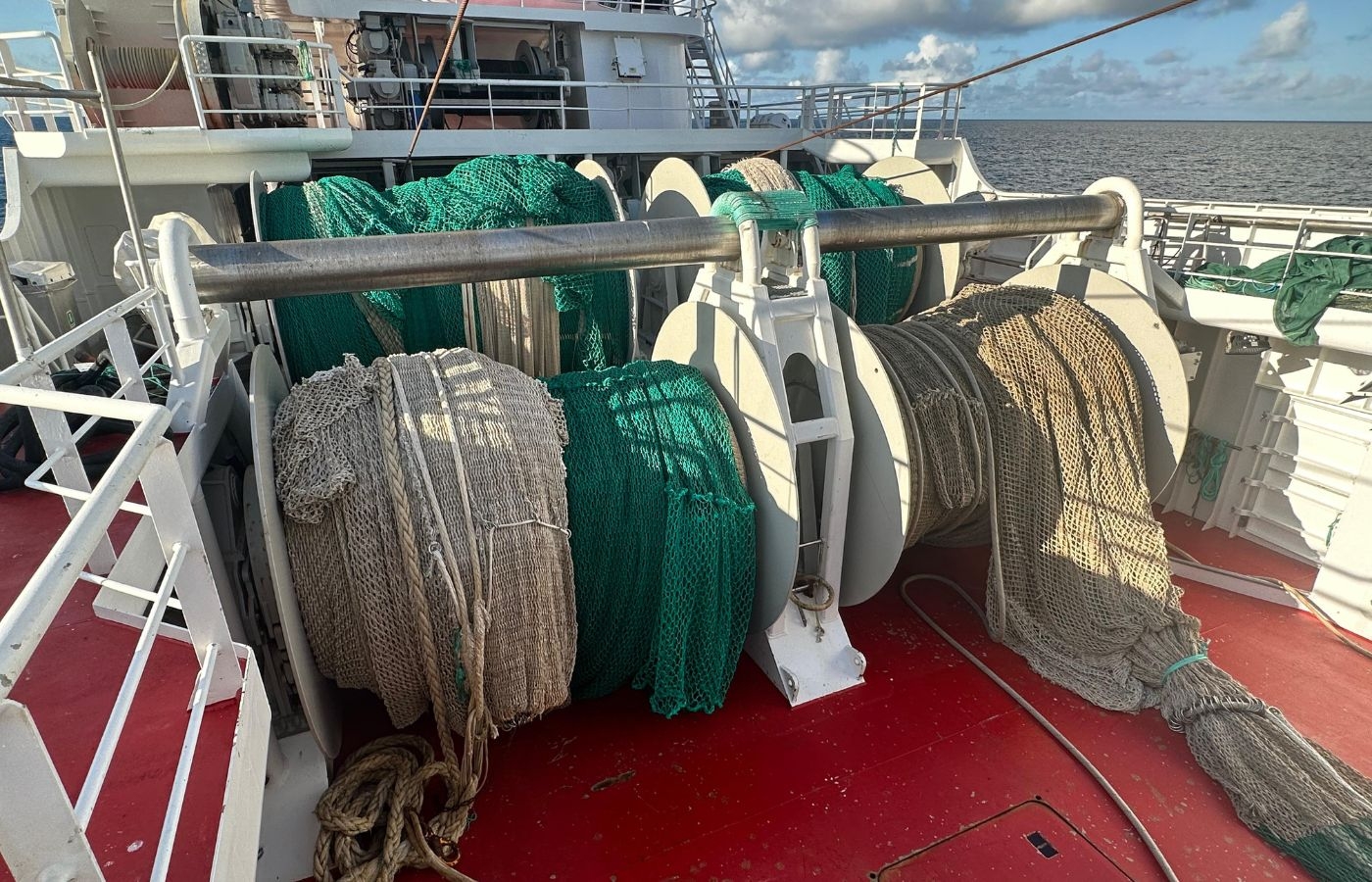 Här tas näten upp på däck.