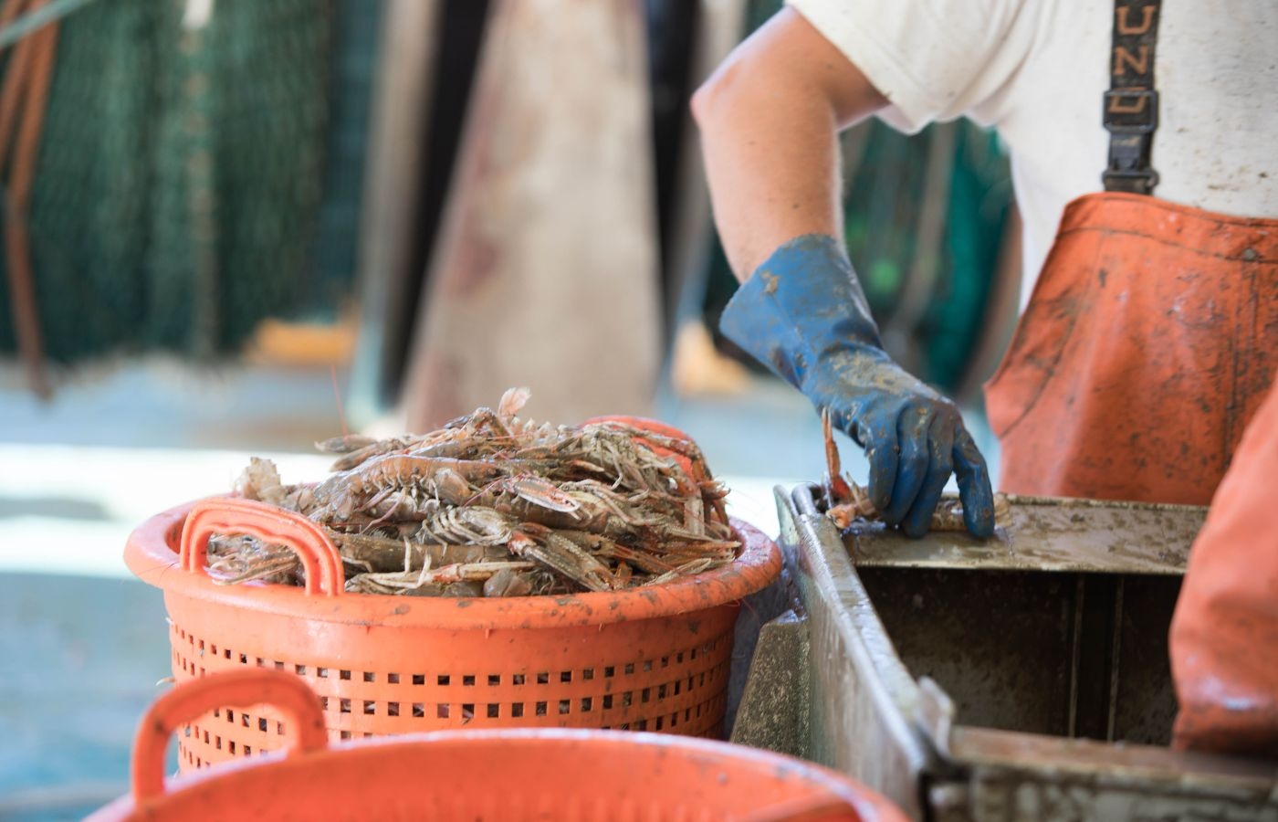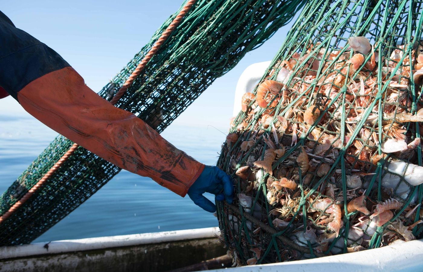 Näten med havskräftor tas upp och töms.