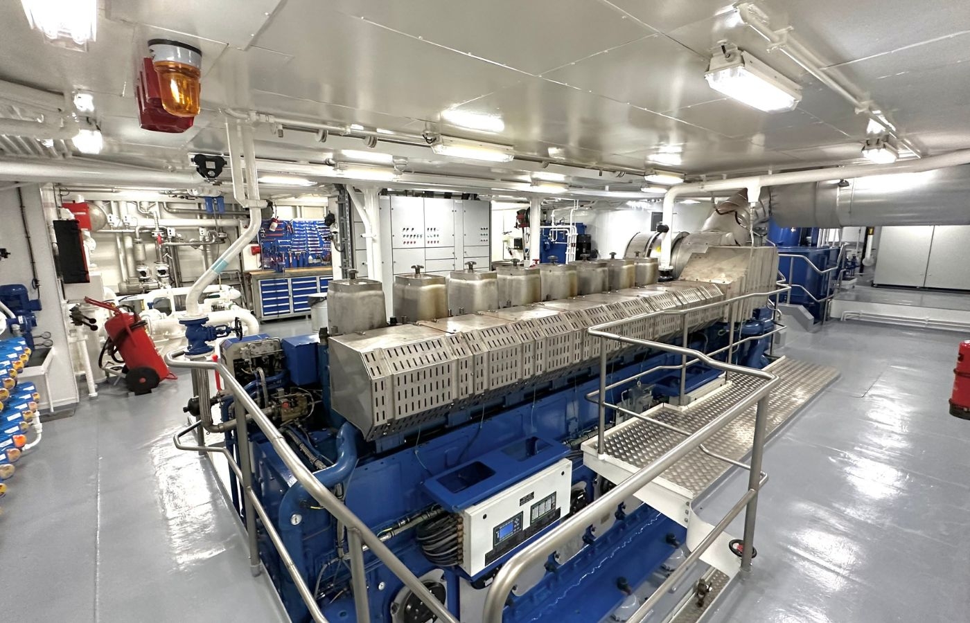 I maskinrummet på en stor båt