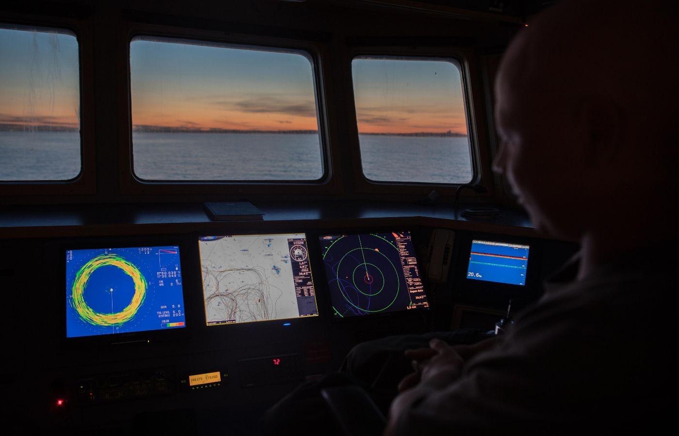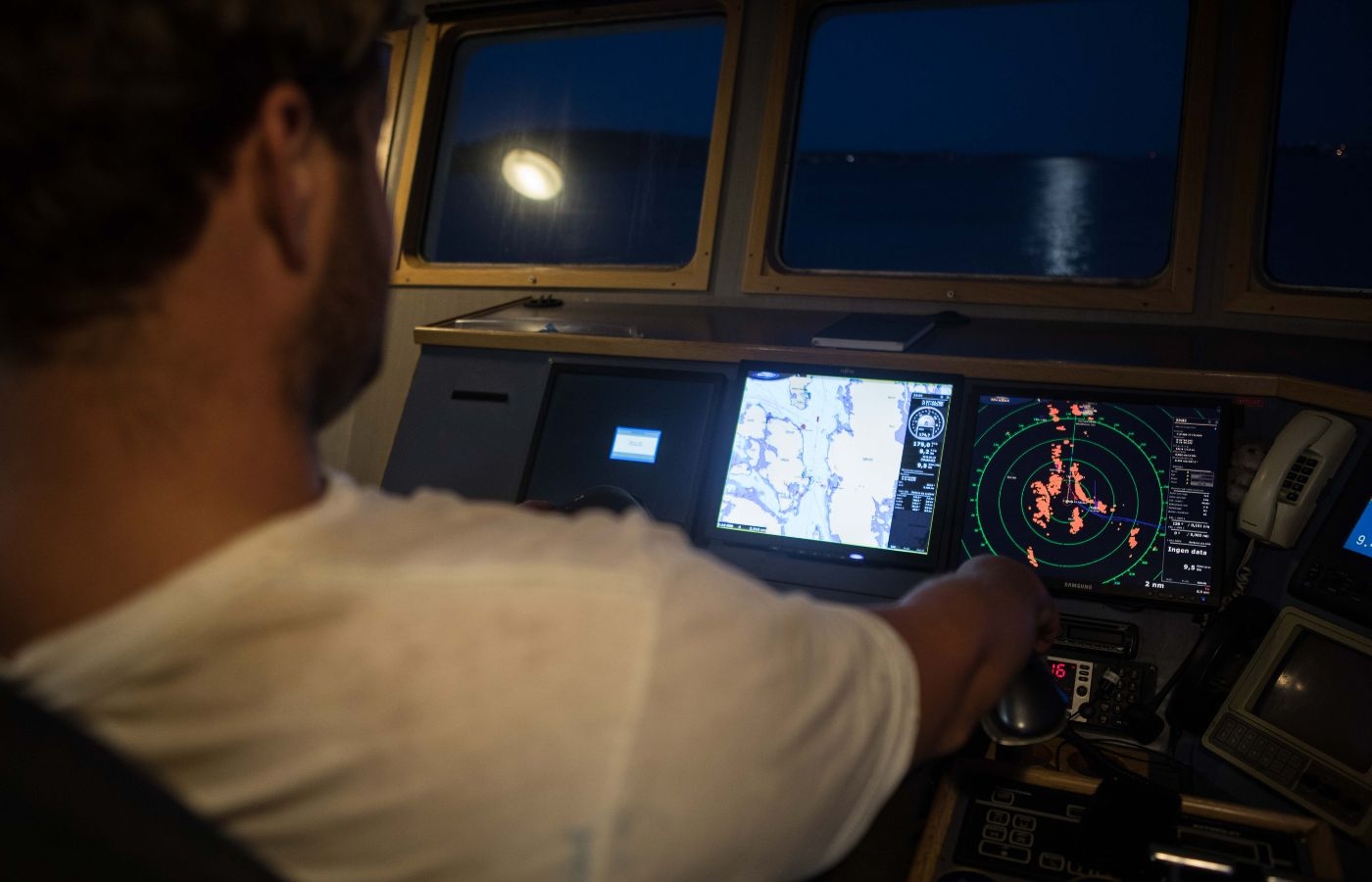 Tidig morgon i styrhytten.