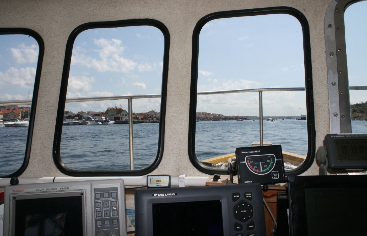 Styrhytten i en mellanstor fiskebåt.