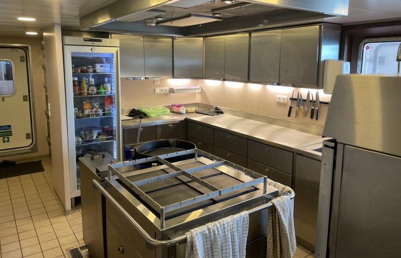 Byssan: Här lagar kock maten ombord. Det är ett fullutrustat kök med stort stekbord ugn samt fritös.