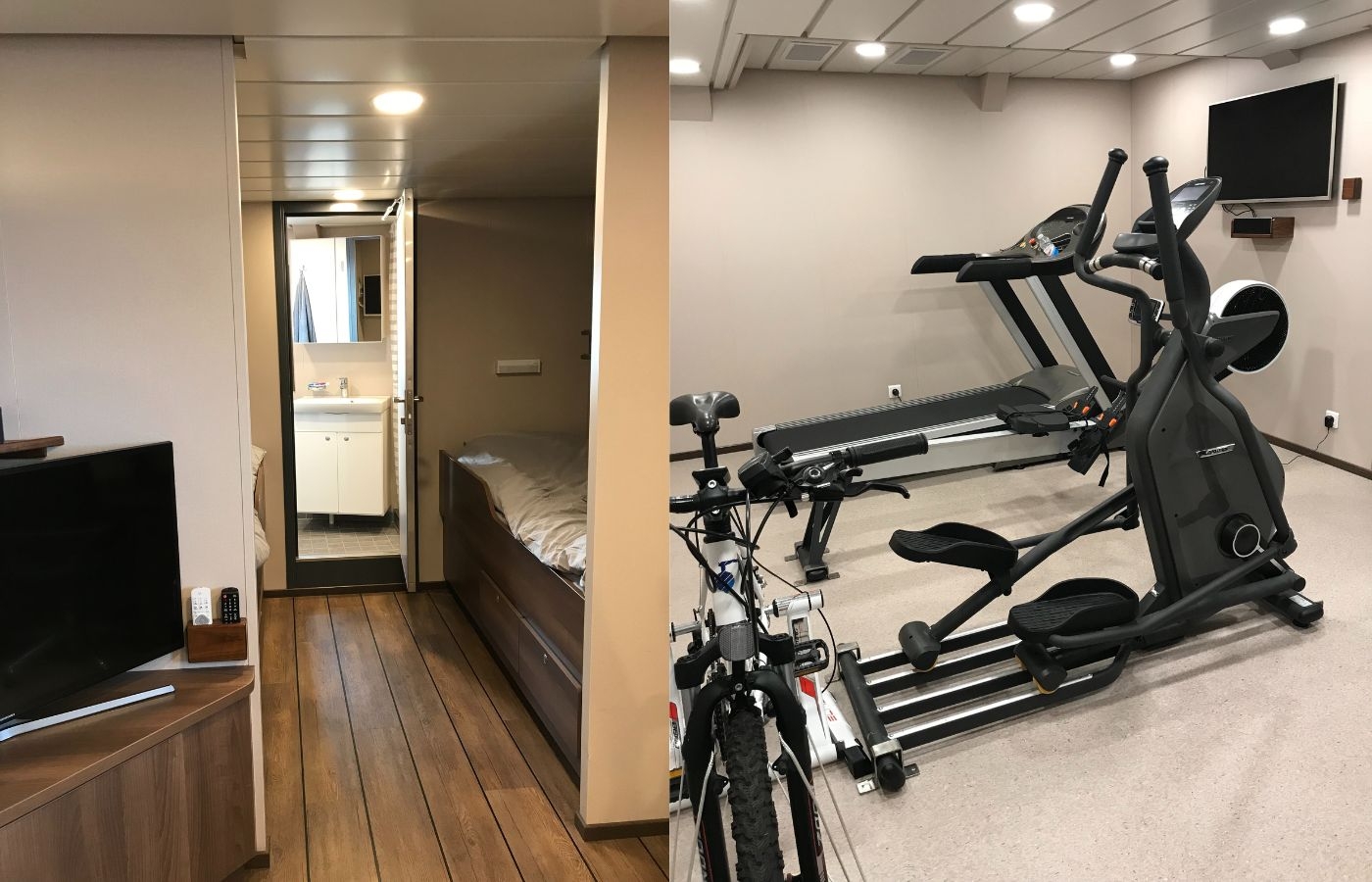 På stora fiskebåtar har man en egen hytt och ibland finns det även gym på båten.