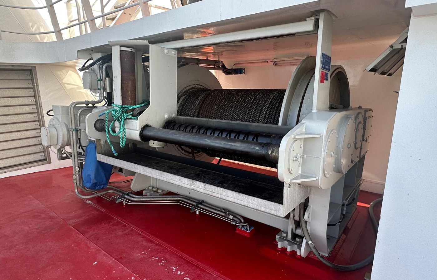 Det här är en trålwinch. Med den drar man upp och ner trålnäten, samt att man kan styra tråldjupet, alltså på vilken höjd trålen går i vattnet. Bild: Gifico