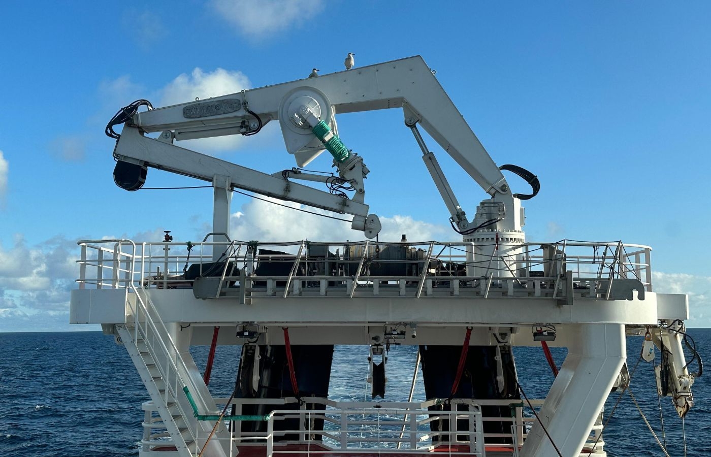 Detta är en lyftkran. Med denna kan man lyfta ombord proviant och reservdelar, eller för att flytta eller hantera fiskeredskap. Bild: Gifico