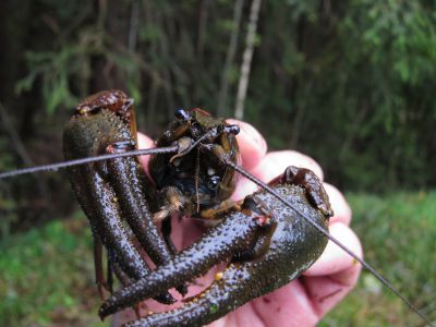 Ibland kan man hitta krabba i fiskdisken, det är samma sorts krabba som du kan fiska med enkla snören eller linor vid bryggkanten.