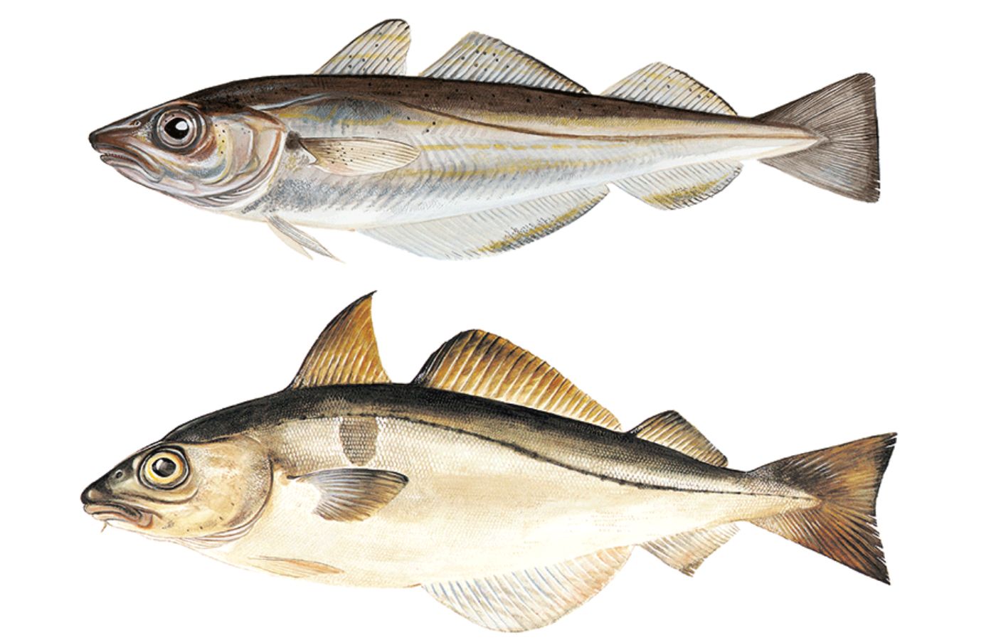Vad heter dessa två torskfiskar som man kan känna igen på den mörka fläcken de har vid bröstfenan?